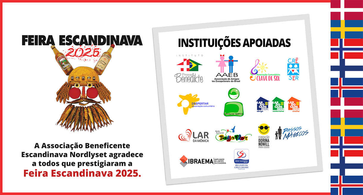 Barracas Barraca da Suécia Barraca da Noruega Barraca da Dinamarca Barraca dos Brinquedos Supermercado Chocolates Comida Bebidas Plásticos Bacalhau da Islândia Realização